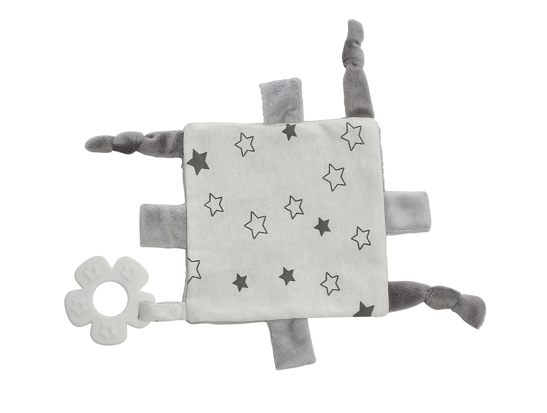 Babies love tactile stimulation, and this crinkle blankie certainly provides that! Soft cotton and velour fabrics make up these adorable blankies. Tabs provide fun play value for babies, and the soft teething ring goes straight into their mouth for their chewing pleasure! Besides all of that, there is a fun crinkle sound inside the blankie itself!