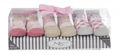 Each gift set contains 3 pairs of coordinating socks, size 0-6 months, beautifully packaged in a box with a ribbon. Sock pairs are also sold separately.
