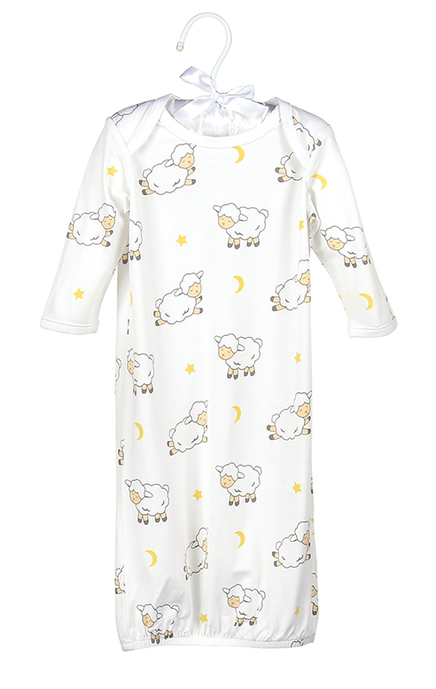 This adorable sack gown features an all-over lamb and stars print and is perfect for a boy or a girl! It is made of luxuriously soft bamboo rayon.