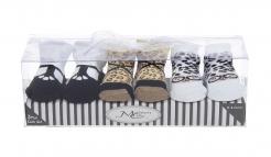 Each gift set contains 3 pairs of coordinating socks, size 0-6 months, beautifully packaged in a clear gift box and tied with a ribbon. Assortment may vary from picture. Sock pairs are also sold separately.
