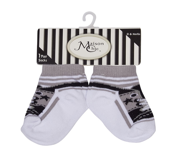 Maison Chic socks are made from cotton and sized to fit 0-6 months