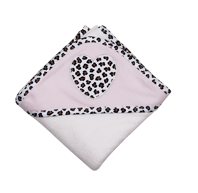 This hooded towel is a generous 35" square bath towel made from 100% cotton with a super absorbent terry cloth lining. Great for infants through preschoolers. It coordinates with Lacey the Leopard. It is beautifully folded and tied with a ribbon, ready for gifting!