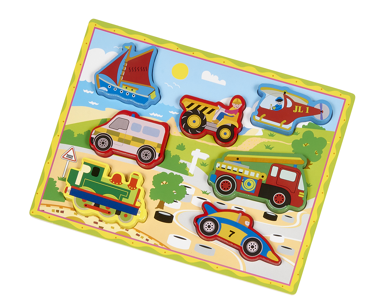 Brightly colored, beautifully crafted, and painted wooden puzzles help develop fine motor skills and promote learning. These puzzles come shrink-wrapped and tied with a ribbon and a gift tag, ready for gifting. Each puzzle measures 12" x 9". Intended for ages 3+